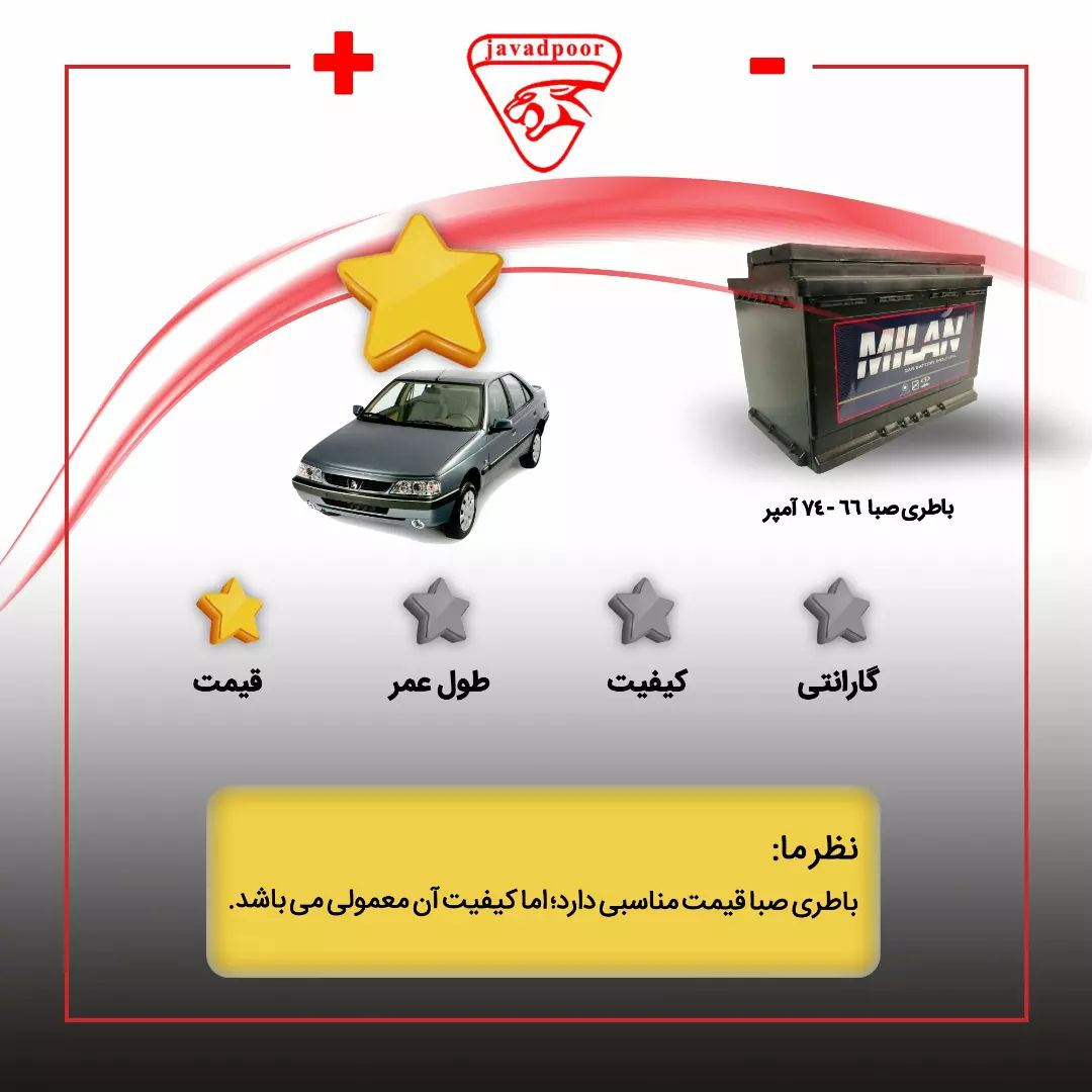 1.باتری صبا 66 آمپر تا 74 آمپر: