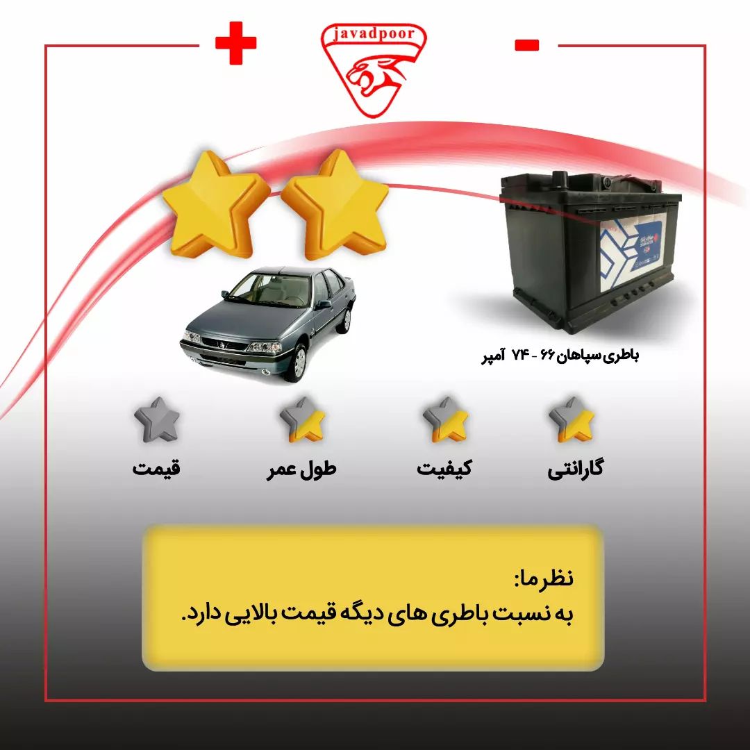 2.باتری سپاهان 66 آمپر تا 74 آمپر: