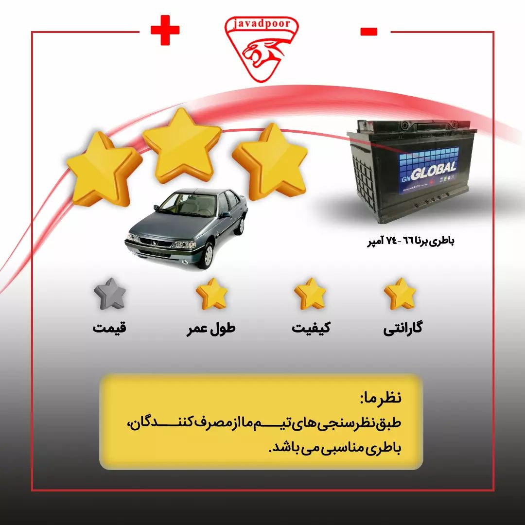 3.باتری برنا 66 آمپر تا 74 آمپر:
